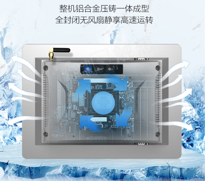 基于心電儀長時間運(yùn)行的工作轉(zhuǎn)態(tài),在散熱方面工業(yè)安卓一體機(jī)完全沒有壓力。整機(jī)一體壓鑄成型,全封閉無風(fēng)扇設(shè)計(jì)(可定制有風(fēng)扇),后蓋圓弧散熱孔設(shè)計(jì),杜絕粉塵、水滴進(jìn)入機(jī)器內(nèi)部的同時,也保障了機(jī)器的散熱性。同時,無風(fēng)扇設(shè)計(jì)運(yùn)行更靜音,無需擔(dān)心機(jī)器運(yùn)行產(chǎn)生噪音而打擾病房安靜。